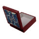 This product is made with beautiful mahogany wood, the inside is lined with white satin. The hinges are very sturdy and keeps a tight close on the box. The pattern tile is wonderful It's truly is an exquisite product. This is a gift for anyone and for any occasion. A fine wooden piece to display on your furniture anywhere in your home. The printing accented the design on the box very well. Very pleased with the Font.