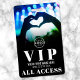 Concert Ticket All Access Special Event VIP Badge. Great for concerts, large special events like conferences, speakers, and can even work for a birthday party. Features a cute play on a concert venue with someone holding their hands into a heart shadow. In the background is a mix of green and blue coloring from the concert lights, creating a cool and vibrant vibe. At the bottom is a bold font with VIP, the event name, date, and 'All Access Pass'. There’s also a designated space where you can upload your logo, making it easy to personalize for your brand, business, or event. You can change all of the text information and font colors of this badge. You can even use a different photo if you want, but it may not fade to black as well at the bottom.