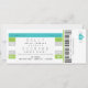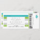 Customize this fun ticket and announce your wedding date in a bold and unique way! Tones of Bright Aqua Blue and Lime Green with accents of Black. A mix of a digital fonts for a true concert ticket feel. Print additional travel, accommodation and/or RSVP details on the back.