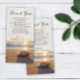 Beautiful thank you card for a memorial service featuring the sun rising over a conch lying on the sandy beach.