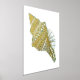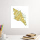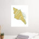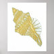 Chic foil print, with a gold foil and aqua conch seashell, on a white background.