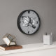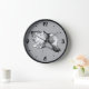 The size of the clock is dramatic and the abstract alcohol ink design is soothing and intricate at the same time. I chose the black frame that adds pop to the blue and gold design. The gold printing would be better in a slightly darker or larger font. I love it and I’m looking for just the right place in ny new apartment. I would recommend this clock for a personal gift or a present. I feel that the quality is excellent for the money! I’m a bit of a clock nut so I’m pretty particular about my purchases. The clock is larger in diameter than many if the clocks I have, so it stands out very well. I think a slightly darker printing color and a moderately larger size would best suit a professional decor or add more impact in a work place item.