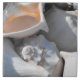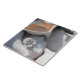 The softly colored artwork on this 6” Ceramic Tile is an original photograph by MaeFlowers of conch shells closeup, of their curving shapes swirling to a tip looking like a crown. The sea shells are white on the outside with salmon pink interiors. The shells are in a pile, each sea shell facing a different direction, making flowing lines in the design. The shells are in sunlight and shadow, with white and pale pink and blue highlights, and deepening shades of gray into the shadows.