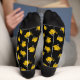 This fun Halloween socks are bright and colorful. The small print is crisp and shows the fun details. The softness of the socks feels nice on my feet and ankles. .