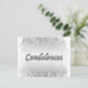 This condolence card has beautiful silver floral swirls set against a white background and the word "condolences" placed in the middle in a bold, embossed style font. BACK: The same design is carried across to the back and the following comforting words are written - "May; Friends comfort you; Faith uphold you Loving memories heal your heart. With sympathy", and below the verse is a text template for your or your families name. CUSTOMIZE IT: All text may be changed to suit your preference and the style, color and size of font amended. The BACKGROUND COLOR, on both sides, may be changed to any color of your choice. USE IT FOR: Sending your sympathies to friends, family and work colleagues who have suffered the loss of a loved one. Whether it be for a funeral, in memory of, sympathy, bereavement, memorial, remembrence or Veteran's day. COPYRIGHT: © Robin Wood - mensgifts