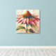 A vibrant display of brush strokes captures a blooming cone flower with pink petals and green leaves, set against a textured background