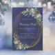 Cone pine greenery gold frame blue Christmas Party Invitation