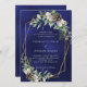 Cone pine greenery gold geometric blue wedding invitation