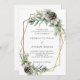 Plain white envelopes are included with paper invitations and will come to fit the invitation size you select. If you don’t need the envelopes, you may choose to not receive them by selecting the dropdown below "Envelopes" and choosing "None." If you’d like to have a design on your envelopes, you can browse all of these available envelopes to find the design that complements your Cone Pine Greenery Gold Geometric Wedding Invitation.