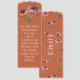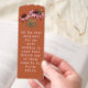 Purple coneflower bookmark with name template and scripture. Bees and cornflowers, or echinacea, design on terracotta color with light pink text. One side contains a name with scripture from the book of Psalms on the other. "All the days ordained for me were written in your book before one of them came to be." This bookmark has edge shape selections.