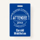 A badge for a Conference Attendee. Change the wording to your details. Conference Attendee badge. Official Attendee badge. White text on a blue background.
