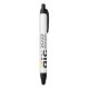 Very nice blue, or black ink pen. I will be buying more. The print was fine. I can easily see the print. The flowers look great.