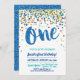 Confetti Blue Glitter First Birthday Invitation
