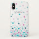 This stylish white Case-Mate Barely There iPhone X Case has a multi-colored teal, pink, and blue confetti pattern with a customizable name template for you to personalize if you wish, or you can delete the name if you prefer that.