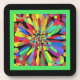 A vibrant abstract flower in shades of blue, purple, red, coral, yellow, gold, green and more!
