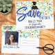 Send off the "Save The Date" announcement for a graduation party with a green confetti top border. Personalize the front and back text in the template fields, remove text or edit using the design tool to select a typeface style, size, and color you prefer. Replace the placeholder photo with your graduate's square photo. Placeholder photo courtesy pixabay.com.