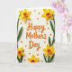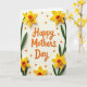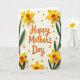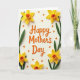 Designed with a light, airy background, this card centers the words “Happy Mother’s Day” in rounded, raised orange lettering that feels warm and welcoming ❤️. The message sits prominently in the middle, with the text color standing out clearly against the pale backdrop. Around it, five sunny yellow flowers with orange-red centers frame the layout, like a gentle bouquet gathered with care. Four blooms sit near the corners while a fifth rests at the bottom center, giving the design a balanced, affectionate look, like a quiet hug in picture form. Deep green stems and leaves curve inward toward the message, as if leaning closer in a friendly, caring gesture 🌼. Small tangerine-colored triangle shapes are scattered across the open space, adding a light, celebratory sprinkle without crowding the main words. The flowers show bright yellow petals, orange-red cores, and curved green leaves, with the bottom-center bloom positioned directly beneath the orange greeting.