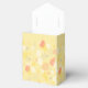 Confetti flower petal and outline flower in modern pastel shades of warm golden yellow, orange coral, with classic warm grey wedding thank you gift box. Ideal gift idea as a wedding favors or to place on reception dinner tables or party tables filled with sweets or gifts for a yellow or coral colored wedding. Would also make a nice parting commemorative thank you for coming gift. Art and design by Sarah Trett. www.sarahtrett.com