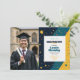 A bold confetti‑starburst background brings bright colour and instant celebration energy to this modern graduation party invitation. The left side features one customizable photo of the graduate, while the right side presents clean, fully editable invitation text framed by playful stars and geometric bursts. The design blends fun party vibes with a polished layout, making it easy to personalize names, dates, venues, and event details. Additional information can be added on the back, keeping the front uncluttered and visually striking. A lively, contemporary invitation perfect for showcasing the graduate in a fresh, upbeat style.