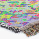 A quality printed throw has its advantages. This is a much finer weave throw than its loopier cousins, and though lighter, it is worth the investment for custom room accessorizing. The back is much prettier than the typical brown, and the fringe on the long sides very vivid, the selvage nicely done. Before photographing, I washed the throw in cold water, delicate, with a thicker woven throw the same size. On tumble dry low, this throw was dry in half the time as the other. This is a very practical quality if you use throws for furniture covers or to wrap up in frequently. The sleekness of the fabric makes it a great layer for accenting or protecting without the feeling of sitting on too much stuff. Perfect for napping or when you feel a light chill coming on. The color printing is beautiful and on this fabric, matched the design and color of my Photoshop image. This is an advantage for blending room fabrics and colors. The fringe on the short sides prints the colors from the design image and therefore varies from the side fringe. I streaked a white fractal line through the plaid pattern to give the illusion of weaving. This printed as crisp as an illusory thread, and put some white in the short side fringe, showing another advantage of print vs loomed- for artistic purposes, line lines, detail, and color integrity can be planned and preserved. My loomed throws have color limitations and more of a needlepoint texture. Print throws reproduce an exact image. The throw felt a little stiff straight out of the package, but this went away in the first delicate wash. Of course I searched the wash water for ink or bleeding and there was none.