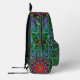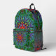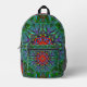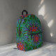 This unique backpack showcases a Persian-style textile mandala art design, combining hand-drawn and graphic techniques for an abstract and eccentric aesthetic. The growth colors symbolize the journey to self-confidence, starting with red for courage and progressing through various hues, culminating in a mature green. Lightweight and durable, this custom all-over-print backpack features adjustable padded shoulder straps, two laptop storage chambers, mesh side pockets, and an identification label.