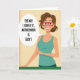 Designed with a modern graphic look, this card features a cheerful woman shown from the waist up on the right, facing forward with a wide, confident smile ❤️. Her brown hair is neatly styled around her face, and she wears red-framed glasses plus shiny gold hoop earrings that catch the light. The cool teal tank top contrasts with her warm skin tone, adding a friendly, approachable feel. On the left, a large white speech bubble points from her mouth, like she’s chatting directly with you in a light, knowing way. Inside the bubble, the message appears in black sans-serif letters, centered and easy to read: “THE WAY I LOOK AT IT, MOTHERHOOD IS EASY !”. The background stays simple with a soft two-tone gradient, keeping the focus on her expression and the message 🌼. The overall layout is balanced, with her figure anchored to the right and the speech bubble filling most of the left side. The scene uses solid shapes, crisp edges, and a gentle shift of color behind her.