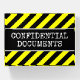 This silly design features the message “CONFIDENTIAL DOCUMENTS”, along with a pattern of black and yellow caution stripes.