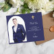 Express your heartfelt gratitude in style with this elegant navy blue photo confirmation thank you card. Designed especially for boys, this card features a rich navy backdrop, a subtle golden cross accent, and space for a personal photo to commemorate the milestone.