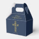 Modern confirmation favor box with a gold cross on a dark blue background and a hand lettered script name. Personalize with name, text and date.