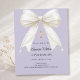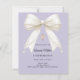 Invite guests with this sophisticated Confirmation invitation. The design features a luxurious ivory satin bow draped with delicate pearls and a shimmering gold cross set against a soft, muted lavender background. It is a beautiful choice for a young girl celebrating her Confirmation.