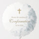 This beautiful confirmation celebration ballooon features an airy blue and white leafy floral bouquet with a simple gold color cross. Personalize this elegant religious occasion party supply with your child's name in classic script, and include the date of this religious occasion. This delicate floral celebration balloon is perfect for celebrating with guests of your Catholic or Christian Denomination Confirmation.