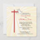 Beautiful invitation card for a boy's Confirmation. Golden rays are shining behind a cross in red and a white dove. The red is the color of Confirmation and the dove symbolizes the Holy Spirit. Personalize the text to make it perfect for your needs for his Confirmation. The corners of this square card are rounded adding a cohesive element with the rounded edges of the cross.