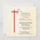 Beautiful invitation card for your son's Confirmation. Golden rays are shining behind a cross in red and a white dove. The red is the color of Confirmation and the dove symbolizes the Holy Spirit. Personalize the text to make it perfect for your needs for his Confirmation. The corners of this square card are rounded adding a cohesive element with the rounded edges of the cross.