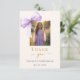 A modern and elegant Confirmation thank you card for a girl. A soft cream colored background, decorated with a large lavender colored bow. Black and golden letters. On the front the text: Thank You, photo, name, and a date.