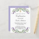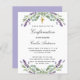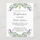 A white background decorated with lavender flowers and eucalyptus greenery. Personalize and a name and details.
