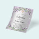 A modern, stylish and glamorous invitation for a Confirmation, A faux silver looking background with violet faux glitter, sparkles, lavender florals, flowers and eucalyptus greenery. The name is written with a modern hand lettered style script. Personalize and add your details.