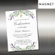 A white background decorated with lavender flowers and eucalyptus greenery. Personalize and a name and details.