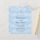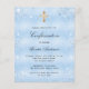 For a confirmation, celebrating a boy. A blue faux metallic looking background. Decorated with blue faux glitter dust. Personalize and add the name and details. The name and confirmation are written with a hand lettered style script