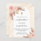 An arch frame and rose gold marble print as background. Decorated with rose gold and pink florals, roses and pampas grass. Personalize and add a name and details.