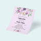 A violet, lavender watercolored background. Decorated with violet and purple watercolored flowers and greenery and a golden cross. Personalize and add your name and reception details.