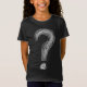 High-contrast black t-shirt design — chaotic white scribble forming a large question mark symbolizing confusion and overthinking