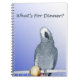 Scarlet's Feathers spiral notebook with companion parrot attitude featuring a congo african grey and a corn muffin