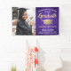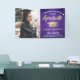 Add a personalized touch to college or high school graduation party decorations with this custom photo purple, gold, and white banner. Design features a purple faux brushed stainless steel background, gold foil look mortar board, stylish modern typography, handwritten style script calligraphy, and one photo of the graduate, such as a senior picture or image from the commencement ceremony. Please note that gold is printed color, not metallic foil. This party sign is an elegant way to celebrate the special day. Congratulations to the graduate!