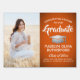 Add a personalized touch to a college or high school graduation celebration with this custom 2 photo orange, white, and silver yard sign. Pictures and all text are simple to customize. Simply place in lawn as a decoration or to welcome guests to a graduation party. Design features an orange ombre background, a faux brushed stainless steel mortar board, stylish modern typography, handwritten style script calligraphy, and two photos of the graduate, such as senior pictures or images from the commencement ceremony. Please note that silver is printed color, not metallic foil. This outdoor party sign is an elegant way to celebrate the special day. Congratulations to the graduate!