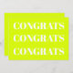 Congrats, Congratulations, chartreuse lime green white modern Note Card.