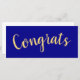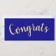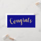 This festivetdesign features large centered "Congrats" written in festive, elegant warm yellow script text. The background of this modern minimalist design is deep rich royal blue.