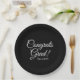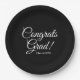 Congrats grad black elegant script class year paper plates