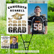 Congratulate and recognize your graduate and/or decorate, give directions or identify the location for a graduation party or open house with this outdoor yard sign featuring a photo on each side, CONGRATS NAME and a black and gold gradient typography GRAD title design. The design is duplicated on both sides; use the same or different photos. ASSISTANCE: For help with design modification/personalization, color change, transferring the design to another product or if you would like coordinating items, contact the designer BEFORE ORDERING via Zazzle Chat or makeitaboutyoustore@gmail.com.