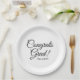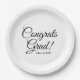 Congrats grad black and white custom classic script text and class year graduation party paper plates.