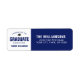 Graduation return address label featuring a graduation cap, Class of year, your graduate's name - your family name and address. Perfect for sending out graduation party invitations and announcements. Easily change the background color to match your school color - click on customize/personalize and scroll to the color picker - also change text color.